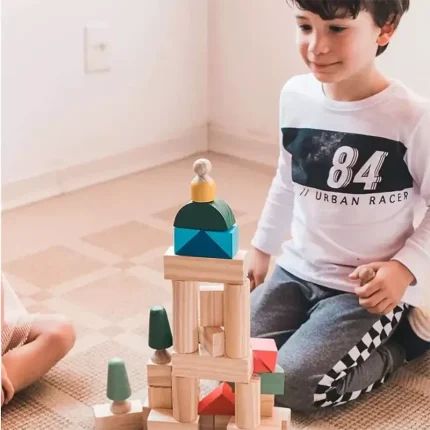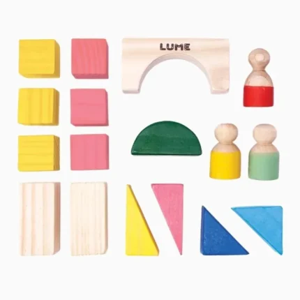 Colorido, instigante e cheio de possibilidades, este conjunto com 72 peças em madeira é uma verdadeira aventura para as mãos e a mente das crianças. As formas variadas e as cores vibrantes convidam à criação de padrões, imagens e combinações inesperadas. Ideal para estimular a concentração e a percepção visual, ele acompanha os pequenos em diferentes fases da infância. Um convite lúdico ao raciocínio, à imaginação e à liberdade de criar.