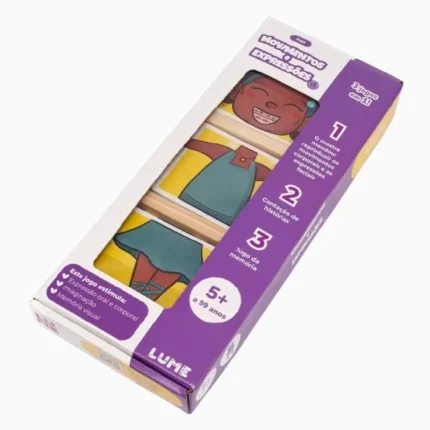 Com peças coloridas e cheias de personalidade, este jogo convida as crianças a montarem personagens únicos misturando roupas, cabelos e expressões. São 72 peças em madeira com recortes que se encaixam em trios, formando combinações divertidas para criar estilos femininos e masculinos. A atividade estimula a coordenação, a imaginação e a interação entre pequenos criadores de moda, tudo acondicionado em uma charmosa caixa de madeira que facilita o transporte e a organização.