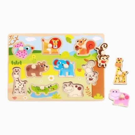 Com peças coloridas e ilustrações encantadoras, este divertido tabuleiro leva os pequenos para dentro da floresta com oito animais que se encaixam perfeitamente. Cada pecinha tem um pino para facilitar o manuseio, tornando tudo mais acessível para mãos curiosas. Ideal para ajudar na coordenação motora e no reconhecimento de formas, essa brincadeira simples se transforma em momentos de pura descoberta. Uma combinação de desafio leve, cores vibrantes e imaginação livre.