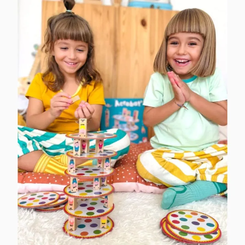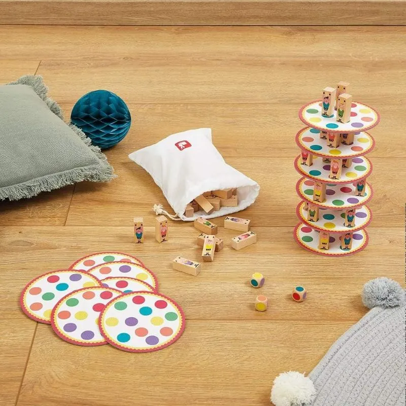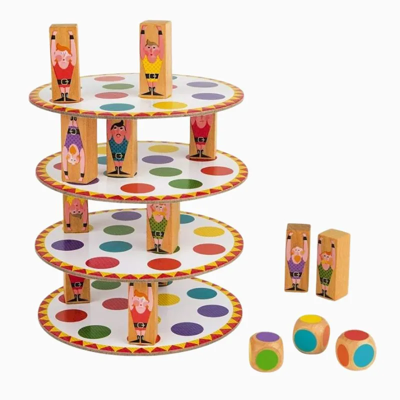 O Acrobatas Jogo de Habilidade Em Madeira 57PÇS Janod convida adultos e crianças a mergulharem numa brincadeira de equilíbrio cheia de surpresas. A dinâmica é simples: sorteie cores nos dados, posicione os acrobatas nos discos e continue empilhando sem derrubar. Além de divertido, é um brinquedo educativo que estimula a coordenação, o foco e o pensamento estratégico, com partidas rápidas e empolgantes.