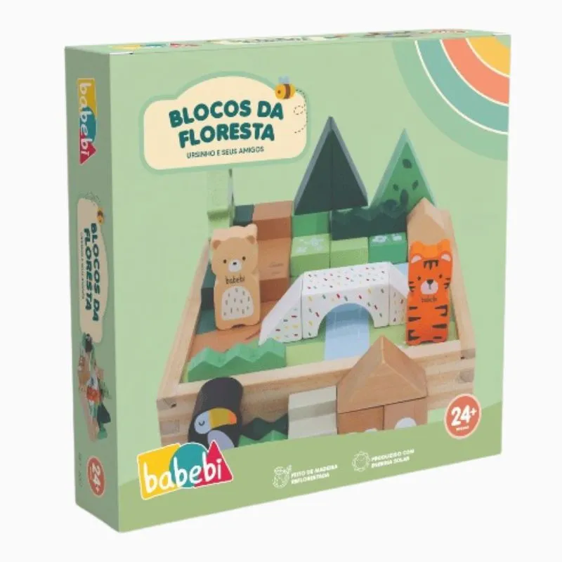 Os Blocos da Floresta Babebi são feitos com madeira reflorestada e tintas atóxicas, ideais para as primeiras explorações manuais. Suas peças coloridas e personagens da floresta despertam o faz de conta de forma leve e divertida. Este brinquedo educativo estimula a coordenação motora fina e o raciocínio lógico em brincadeiras que se reinventam a cada dia. Ursinho e seus amigos ajudam a criar cenários únicos, com liberdade e criatividade.