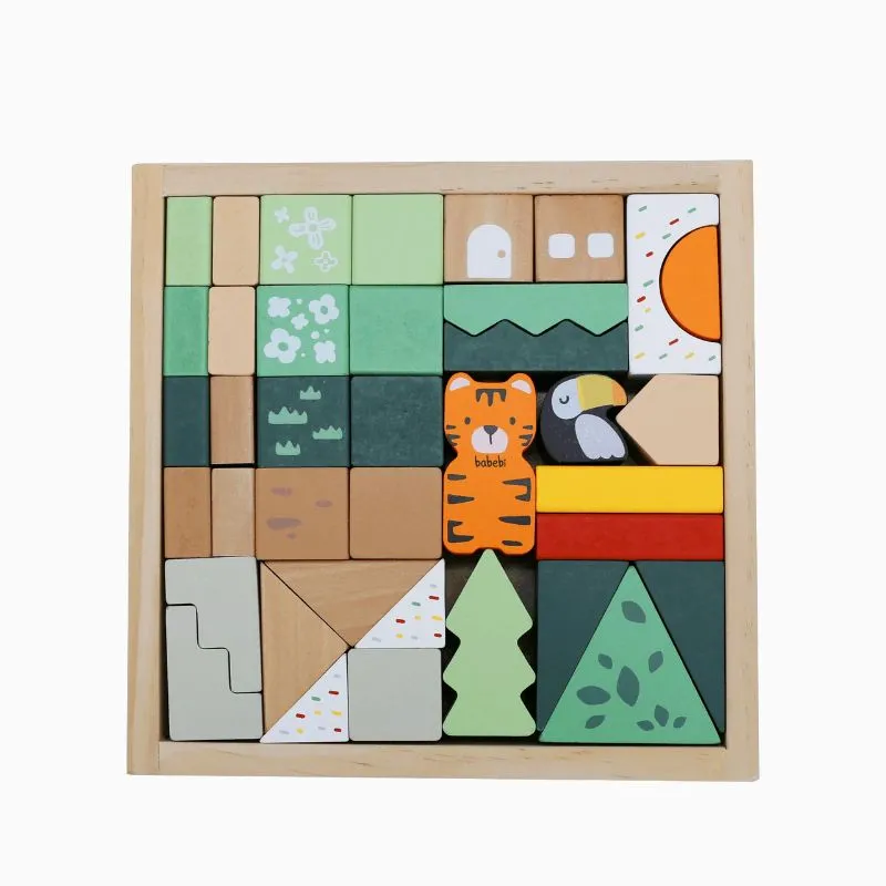 Peças coloridas, animais da floresta e muita imaginação: um mundo inteiro cabe dentro desse conjunto encantador. Com personagens simpáticos e blocos de madeira em diferentes formatos, a brincadeira ganha vida em cenários que estimulam a criatividade, o equilíbrio e o raciocínio. Ideal para pequenas mãos exploradoras, é perfeito para contar histórias, empilhar e criar. Um convite irresistível ao faz de conta desde os primeiros anos de vida.