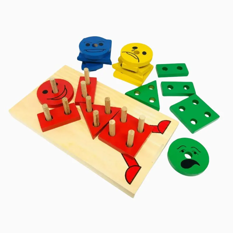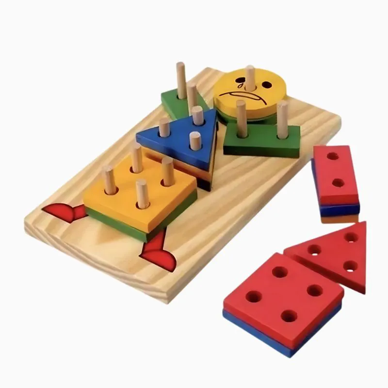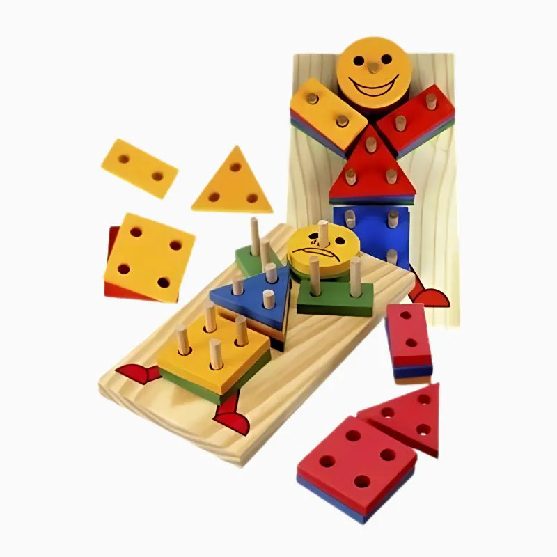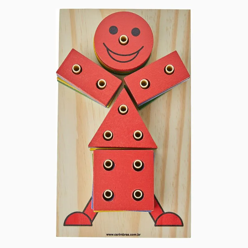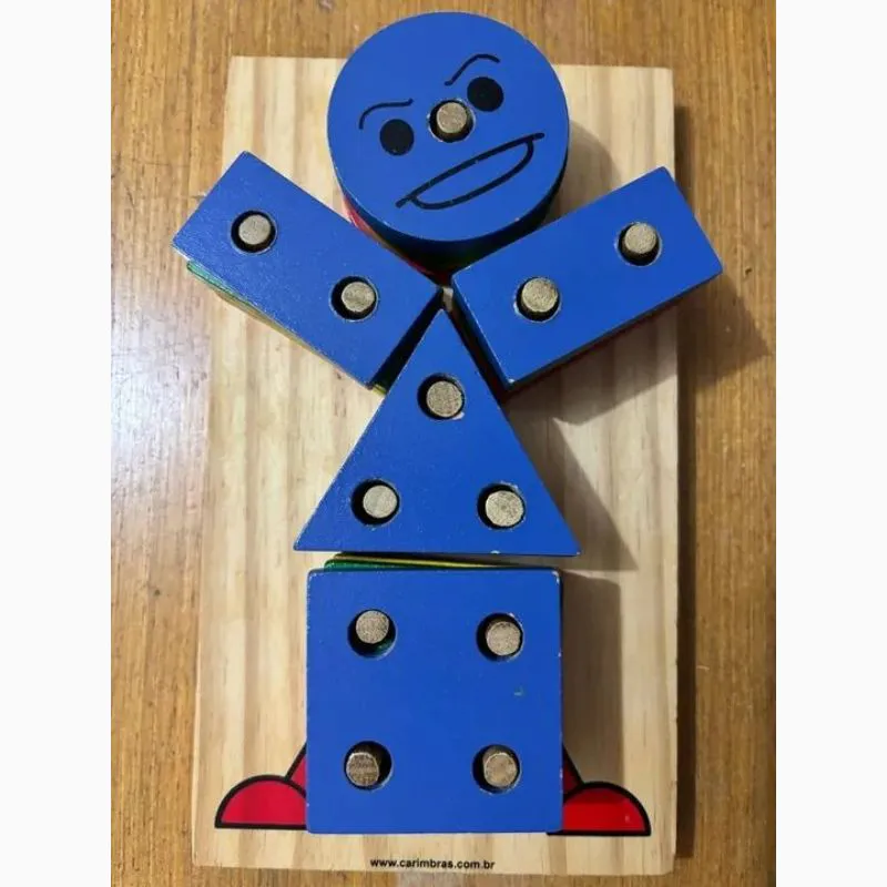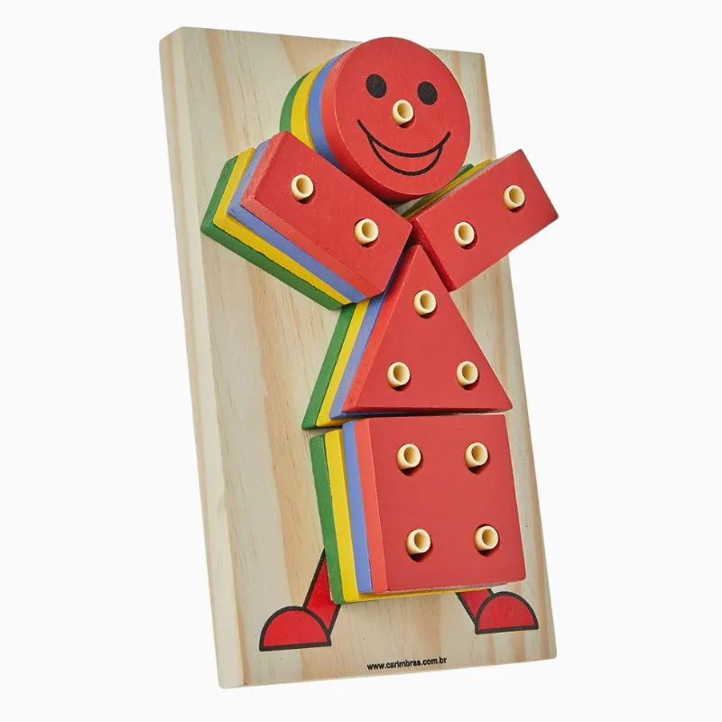 Diversão Com Formas e Cores: Boneco Geométrico De Encaixe Em Madeira Carimbrás