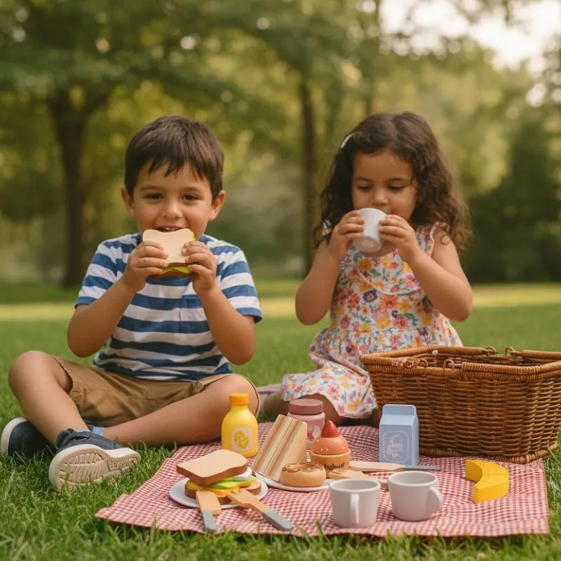 Durante o piquenique, a criança aprendem a dividir, esperar sua vez e colaborar com os outros. A interação com amigos ou adultos enriquece o momento e fortalece os vínculos afetivos. Manipular cada peça ajuda no desenvolvimento da coordenação motora fina e da concentração. É uma experiência que combina diversão e aprendizado sem esforço.