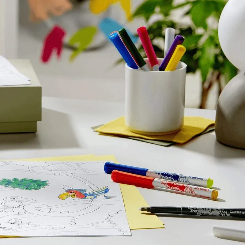 Colorir ganha uma nova dimensão com a Color’Peps Magic Caneta Hidrográfica 8 Cores Maped. Este é um brinquedo educativo que transforma atividades simples em verdadeiros espetáculos visuais, estimulando a criatividade desde os primeiros traços. Com o uso da caneta reveladora, as cores mudam diante dos olhos, criando efeitos únicos a cada desenho. Tudo isso com segurança, resistência e uma experiência envolvente para as crianças.