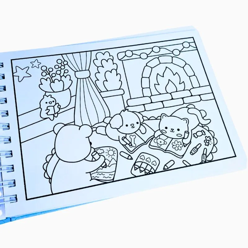 Cada desenho retrata situações do cotidiano com um toque acolhedor, perfeito para colorir no seu próprio ritmo. O papel firme permite usar diferentes materiais com tranquilidade. As cenas inspiram sensações de bem-estar e favorecem momentos de calma e silêncio. Colorir aqui vira uma experiência sensorial completa, que estimula o foco e a criatividade.
