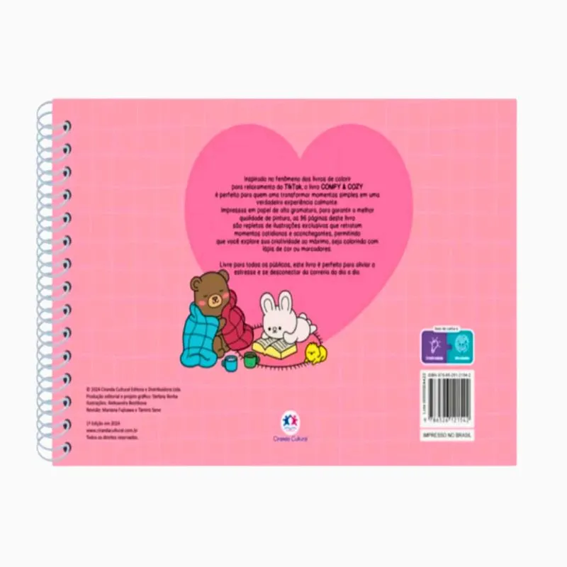 O Comfy and Cozy Pink Livro de Colorir Ciranda Cultural é um brinquedo educativo pensado para proporcionar bem-estar através da arte. São 96 páginas com 48 ilustrações únicas, todas impressas em papel de alta gramatura para uma coloração suave e de qualidade. Ideal para todas as idades a partir dos 9 anos, o livro transforma o ato de colorir em um momento de calma e inspiração. Uma escolha afetuosa para desacelerar e aproveitar o presente com mais atenção.