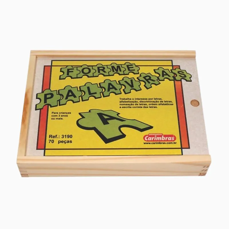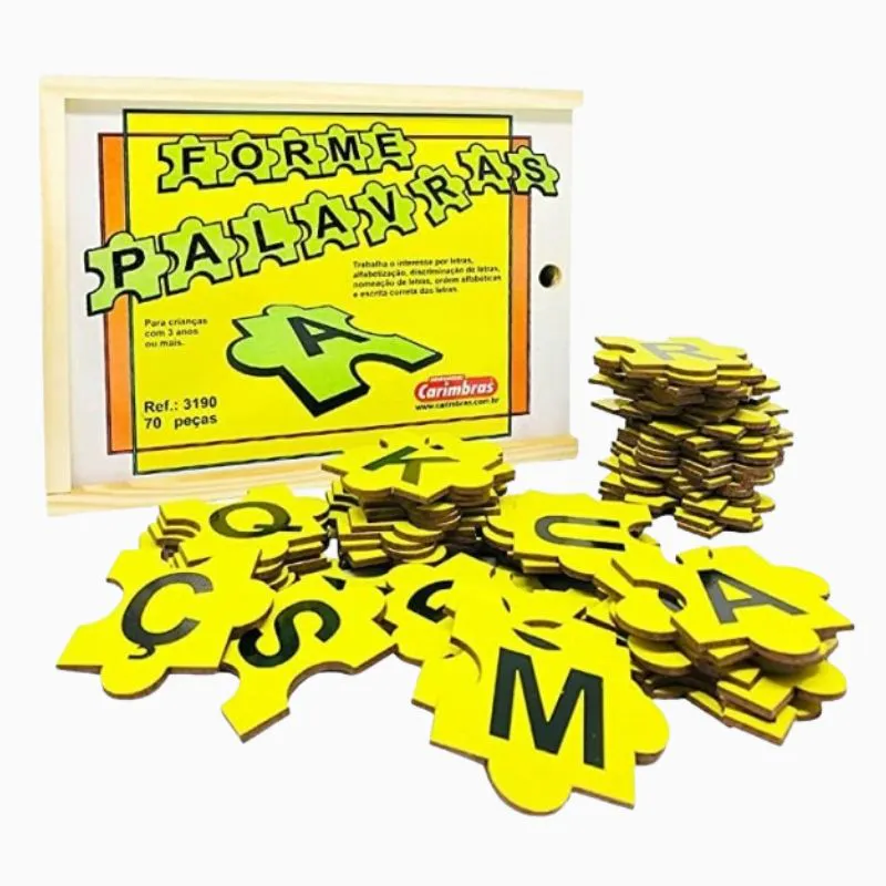 O Forme Palavras Quebra-Cabeça Carimbrás é um brinquedo educativo com 70 peças de encaixe, ideal para estimular o contato das crianças com o alfabeto desde os primeiros anos. Ele incentiva a formação de palavras, sílabas e cruzadas de maneira simples e envolvente. O formato de quebra-cabeça torna tudo mais divertido, permitindo que a criança explore a linguagem com liberdade. O material em madeira e a caixa tipo estojo garantem praticidade e durabilidade.