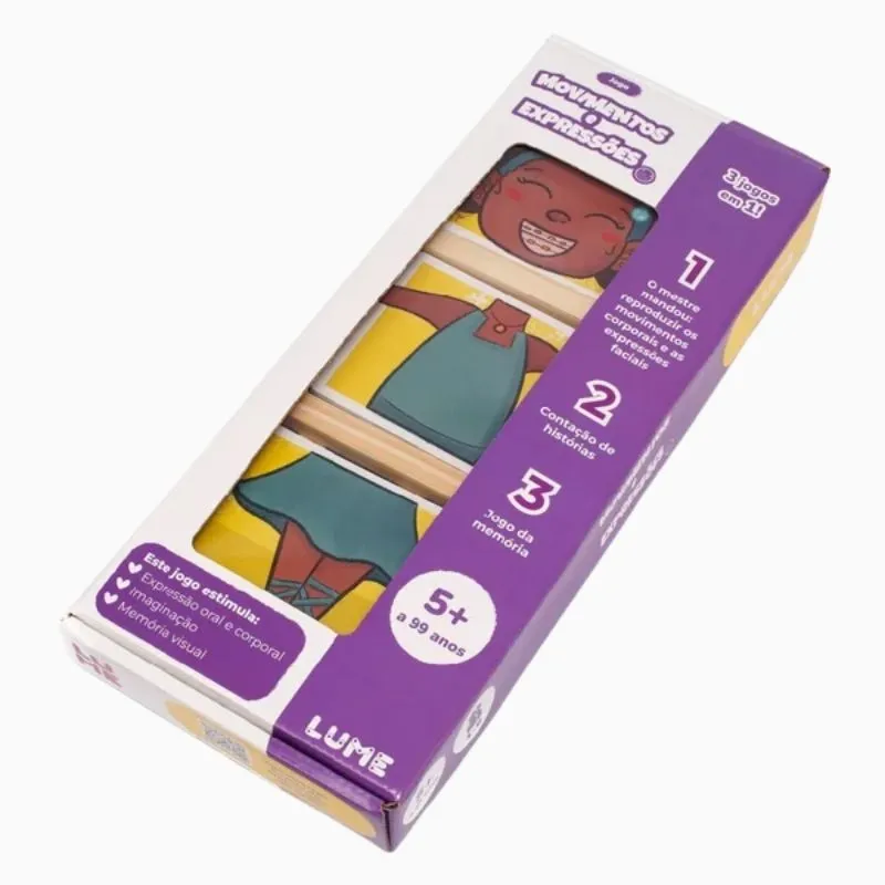 O Jogo 3×1 Movimentos e Expressões Em Madeira Lume é uma caixa de possibilidades que une criatividade, movimento e imaginação em três formas de brincar. Ele convida as crianças a se expressarem com o corpo, criarem histórias e exercitarem a memória de maneira divertida. Uma proposta envolvente que valoriza a autonomia e transforma cada rodada em uma nova descoberta. Um excelente brinquedo educativo para brincar com propósito e leveza.