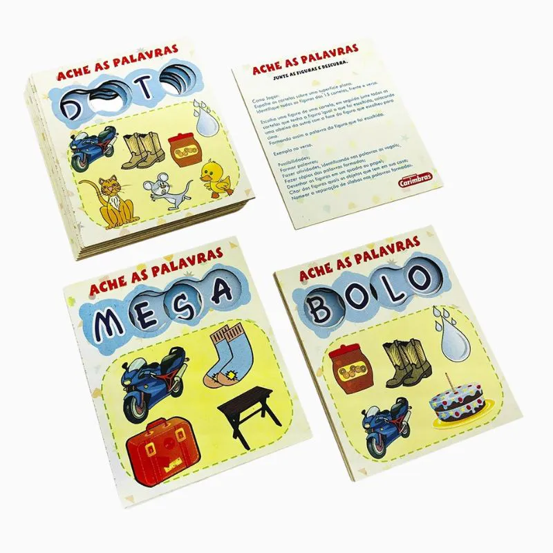 O Jogo Ache As Palavras Com 16PÇS Em Madeira Carimbrás transforma o universo das palavras em algo prático e divertido. Com 16 peças de madeira estampadas frente e verso, as crianças completam palavras associando letras às imagens. Um brinquedo educativo perfeito para ajudar na alfabetização de forma natural, estimulando o reconhecimento das letras e a formação de palavras.