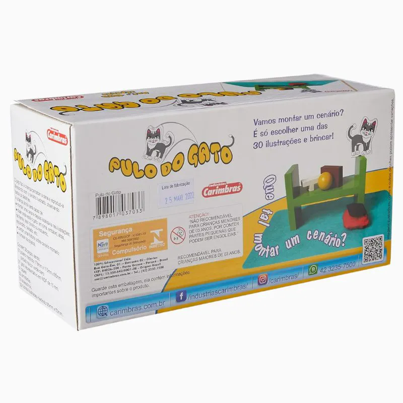O Jogo Pulo do Gato Em Madeira Carimbrás transforma pequenas peças em cenas cheias de sentido e imaginação. A criança observa as fichas ilustradas, monta o cenário com atenção e nomeia onde está o gato e cada objeto. A proposta é simples, mas rica em possibilidades, incentivando o raciocínio, a linguagem e a criatividade. Um brinquedo educativo que convida o adulto a participar, conduzindo perguntas e escutando histórias criadas com liberdade.