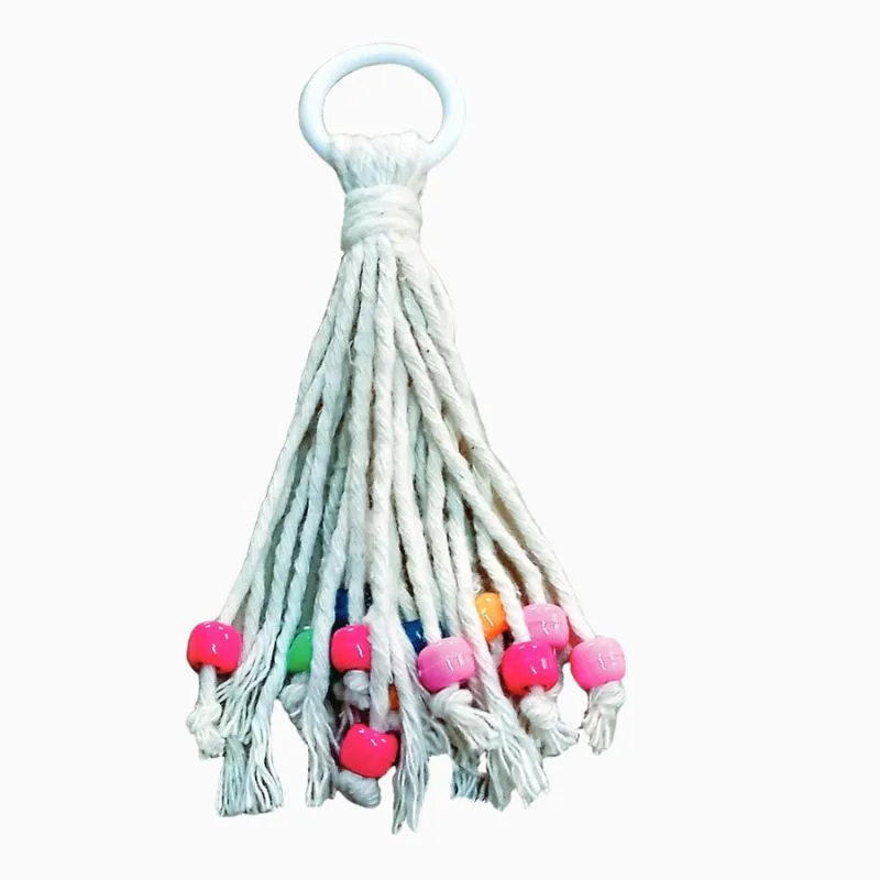 - Material de fabricação: Barbante, plástico, metal e couro sintético