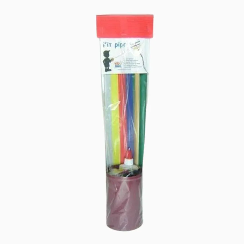 - Conteúdo da embalagem: 6 varetas de bambu, 1 cola não tóxica, 1 carretel de linha, 1 lata plástica, folhas de papel de seda coloridas, tiras de plástico para rabióla, instruções