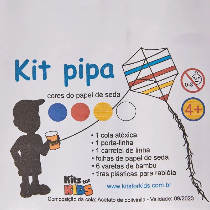 O Kit Construa Sua Pipa Kits for Kids desperta a curiosidade e a alegria de soltar pipas feitas pelas próprias mãos. Ele vem com todos os elementos necessários para montar duas pipas: folhas coloridas, varetas de bambu, linha, rabiola e cola não tóxica. A atividade de montagem convida as crianças a participarem do processo criativo com entusiasmo. Trata-se de um brinquedo educativo que integra diversão com a vivência do fazer manual.