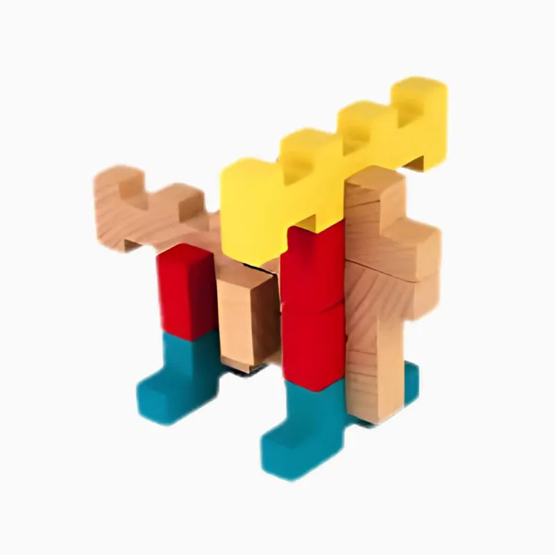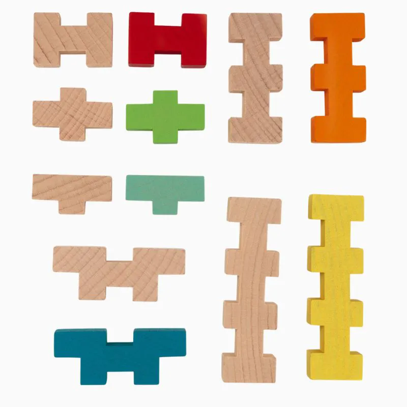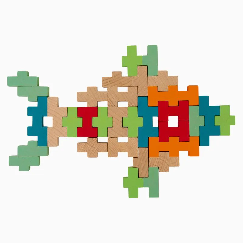 Colorido, instigante e cheio de possibilidades, este conjunto com 72 peças em madeira é uma verdadeira aventura para as mãos e a mente das crianças. As formas variadas e as cores vibrantes convidam à criação de padrões, imagens e combinações inesperadas. Ideal para estimular a concentração e a percepção visual, ele acompanha os pequenos em diferentes fases da infância. Um convite lúdico ao raciocínio, à imaginação e à liberdade de criar.