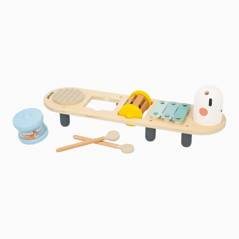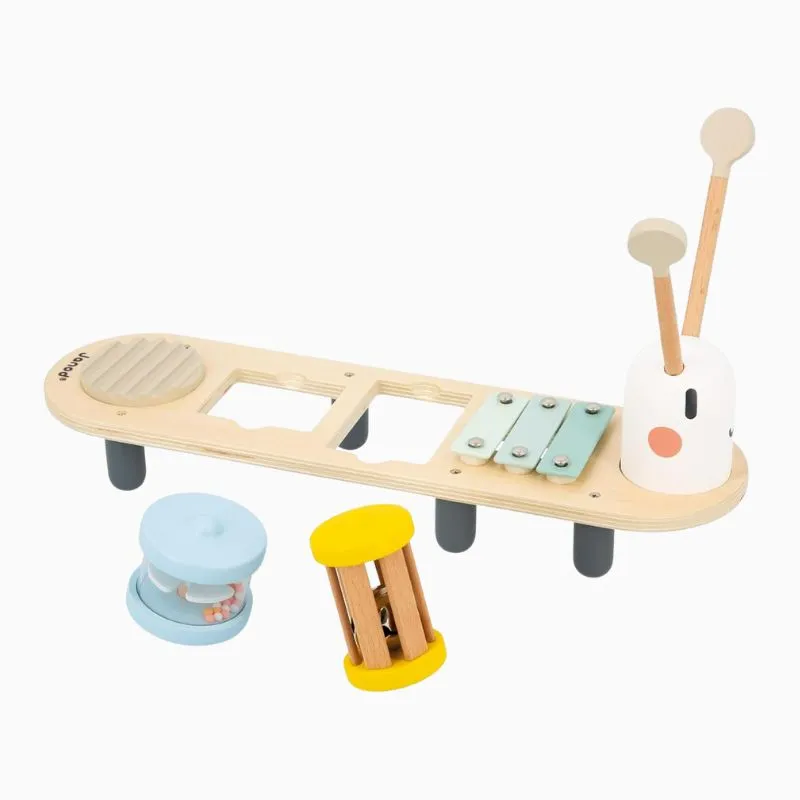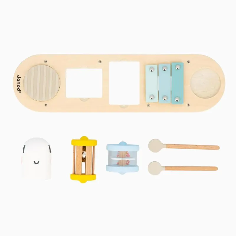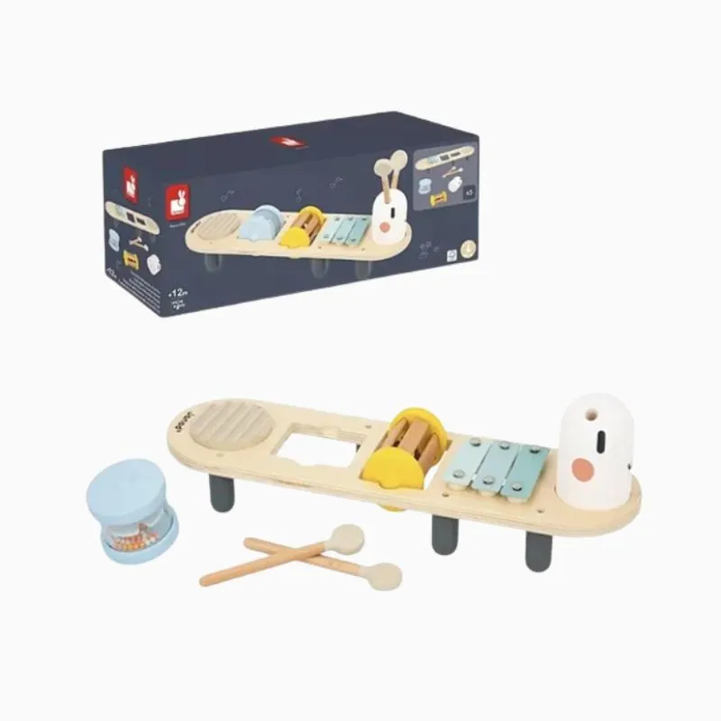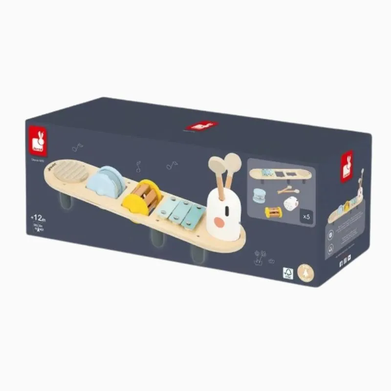 A Lagarta Musical Sweet Cocoon Janod é um brinquedo educativo pensado para crianças a partir de 12 meses. Com cinco instrumentos integrados — como xilofone, maraca, bastão de chuva e sino — estimula a coordenação motora, a escuta e o tato de forma lúdica. Seu visual em madeira com cores suaves encanta desde o primeiro olhar. É uma escolha divertida e segura para os primeiros contatos com sons e ritmos.