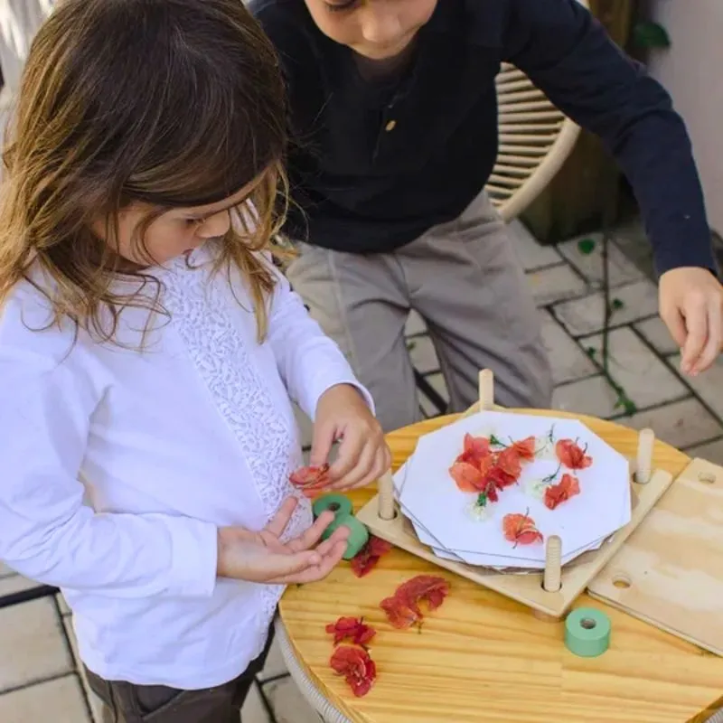 Transforme um passeio no parque em uma aventura criativa! Com uma prensa robusta e acessórios encantadores, as crianças podem coletar flores e folhas, secá-las e criar cartões, colares e marcadores cheios de cor e significado. Além de estimular a imaginação, é uma forma lúdica de cultivar o cuidado com a natureza. Um jeito simples e inspirador de eternizar momentos ao ar livre com muita sensibilidade e arte!