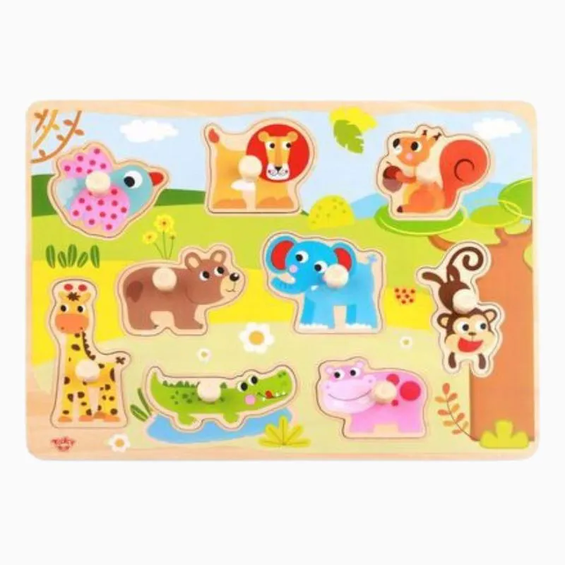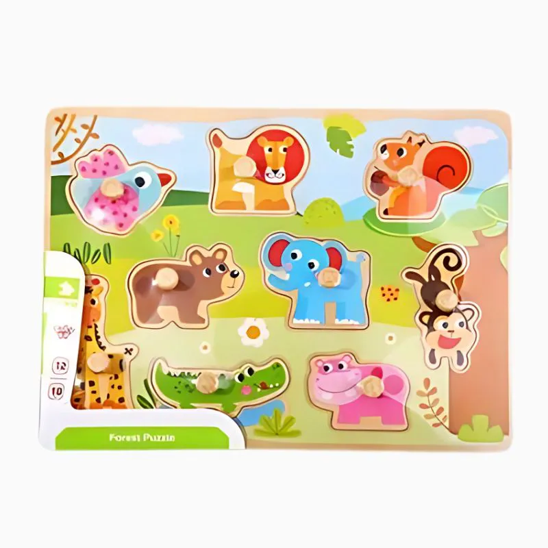 O Tabuleiro De Encaixe Floresta com Pinos Hi Pando é um brinquedo educativo que une diversão e estímulo para os pequenos a partir de 12 meses. Com oito animais em madeira ilustrados em cores vivas, o tabuleiro oferece uma experiência visual encantadora. Cada figura tem seu espaço certo e um pino que facilita o encaixe, tornando a brincadeira acessível e envolvente. Ideal para desenvolver percepção visual, coordenação motora e concentração.