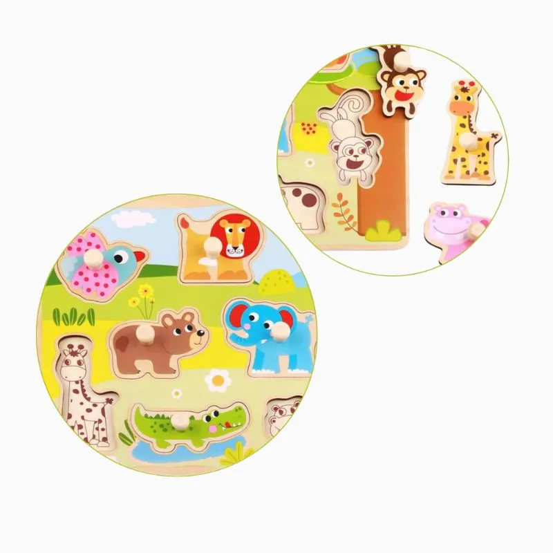 Com cores vibrantes e peças fáceis de segurar, esse tabuleiro leva os pequenos para um passeio pela floresta. São oito animais ilustrados que se encaixam perfeitamente em seus espaços, tornando a brincadeira leve e envolvente. As peças com pinos facilitam o manuseio por mãos pequenas, estimulando coordenação e atenção. Uma atividade divertida que incentiva a exploração do ambiente natural com criatividade, cuidado e muita imaginação desde os primeiros meses.